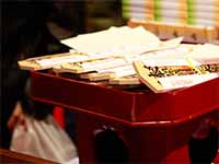 - 元日午前8時より、皆様の車に修法師(しゅほっし)による特別祈祷を行い、お守り、交通安全ステッカーを授与します。