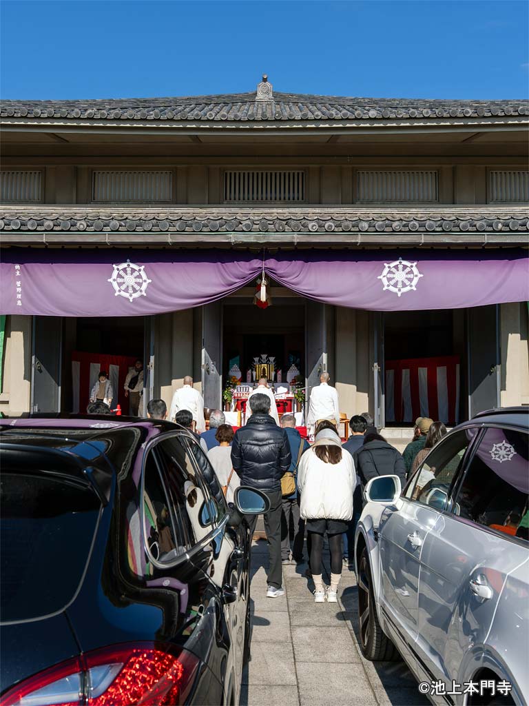 午前中から僧侶による読経が続けられ、午後1時より法要が営まれました。冬至の澄んだ空気の中、読経の妙音が一日中響き渡り、参詣者で大いに賑わいました。法要後、木内執事長は挨拶の中で、「冬至は一年で一番夜が長い日ですが、それは同時に新たな始まりを表す日でもあります。闇が深いからこそ星が輝くように、妙見様は北極星として、私たちに静かに正しい方向を示してくださる存在です。ご自身の心の光を信じて、新しい年を迎えてください」と参列者に呼びかけました。