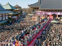 今年一年の無病息災と開運招福が祈念され、午後3時から参列者全員で大堂前特設舞台へ進み、盛大な豆まきが行われました。