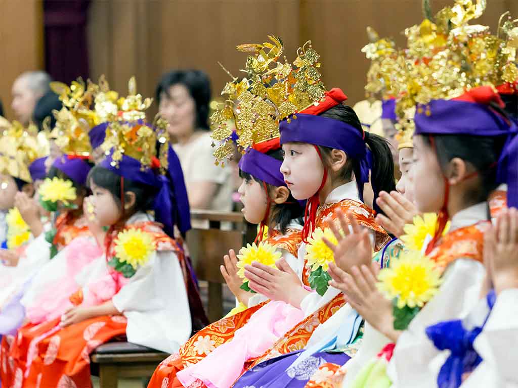 29日(祝日)午前11時より営まれる「子供達の健全育成祈願法要」にて、命名児(貫首様からお名前を授かったお子様)・初参りされたお子様・七五三祈願をされたお子様等の健やかな成長を祈願する集いを行います。