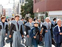 本年も百名を越える福男福女が 裃(かみしも)を身につけ、徳持会館から本門寺大堂まで練り歩き、新春の喜びを分かち合った。