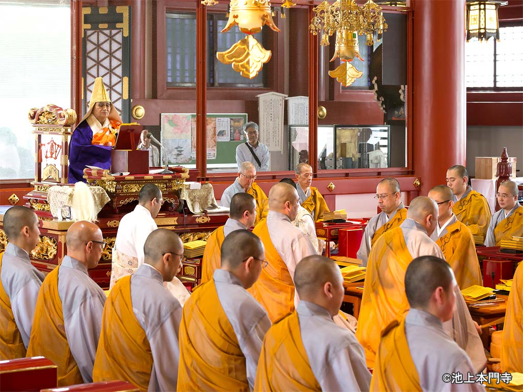 この度菅野貫首が叙任される「大僧正」とは日蓮宗における最高位の僧階(僧侶の階級)です。また「管長」は宗派を統括する役職で、日蓮宗の管長は管長推戴委員会で審議のうえ推戴されます。その職務は、国の憲法や法律にあたる宗制の公布、ご親教、僧階・住職の認証など多岐に渡ります。