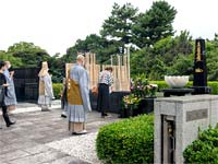 九月二十日(火)午前十時より、本殿において菅野日彰貫首大導師のもと池上奉賛会秋季彼岸会法要が営まれました。法要中、菅野貫首が各家のお位牌を祀る常経殿を参拝し、各霊位にご回向を捧げました。午後二時からは木内隆志執事長が導師を務め、奉賛会会員のご先祖さまの追善供養を行いました。また九月二十三日(金)の午前十時より檀信徒各家先祖代々追善法要が菅野貫首大導師のもと営まれました。副導師による卒塔婆の灑(しゃ)水(すい)供養が行われ、浄水にて塔婆が清められました。