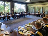 8月25日(月)第三回勧財会が開催され、浄財勧募趣意書の原案および、浄財勧募の基本的な方向性が示されました。勧募の方法については、過去の宗祖七〇〇遠忌における事例を参照しながら、現代社会にふさわしい在り方が検討され、広く共感を呼びかけるための工夫について意見交換がなされました。 翌26日(火)に、第三回実行委員会が開かれました。委員会の組織体制として布教部会・法要団参部会・山内整備部会・広報出版部会・総務部会の五部会が設けられ、それぞれの部会で具体的な議論を進めることが決定。各部会では部会長・副部会長・記録係を選任し、役割分担が明確化されました。さらに、今後の事業について具体的な検討が行われ、進捗状況を報告・共有する体制が整えられました。次回以降は事業計画の具体化が進められる予定です。